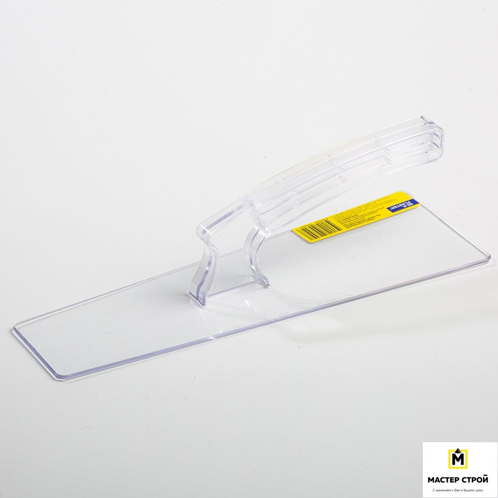 Кельма (тёрка, шпатель) прозрачная, повышенной жесткости, предназначена для нанесения жидких обоев и декоративных штукатурок. Размеры 60х90х240 мм.